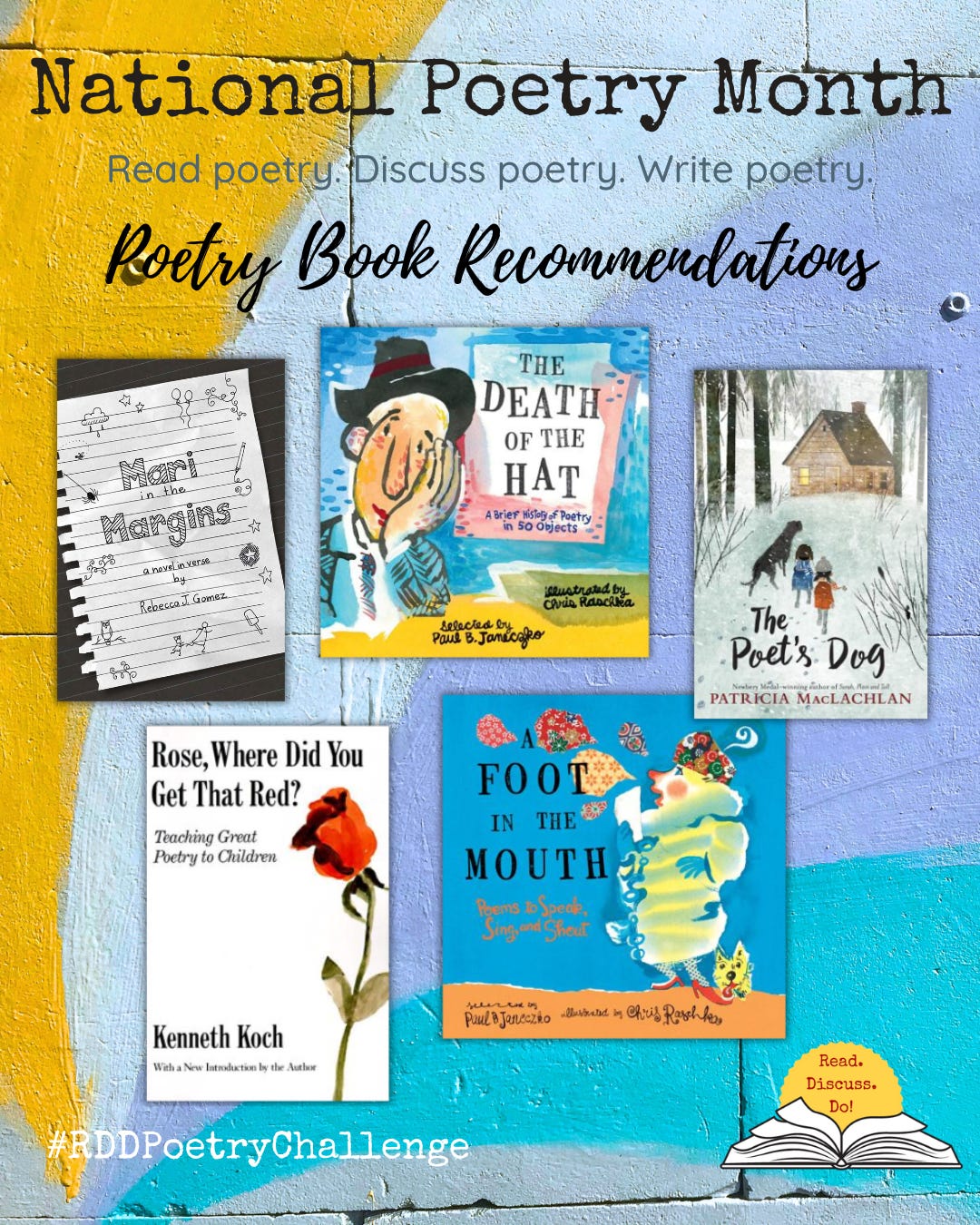 April is National Poetry Month, and here at Read, Discuss, Do we like to observe the occasion by challenging our readers to read, discuss, and write poetry with the children in their lives. Of course, you’re welcome to follow along even if there are no children in sight. Everyone’s welcome here!
